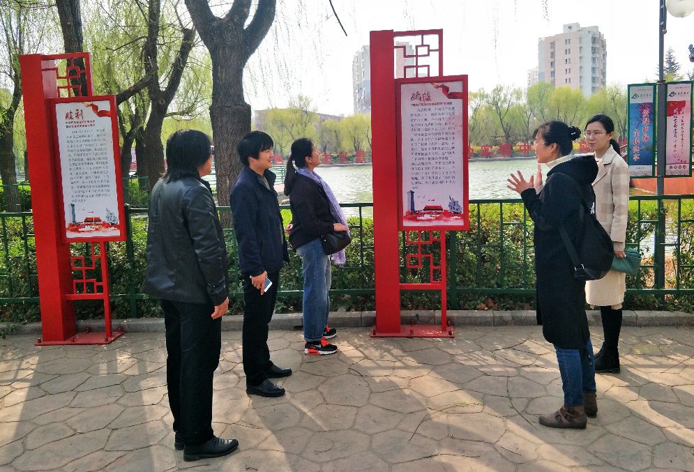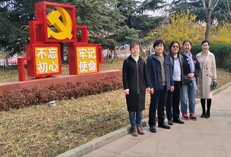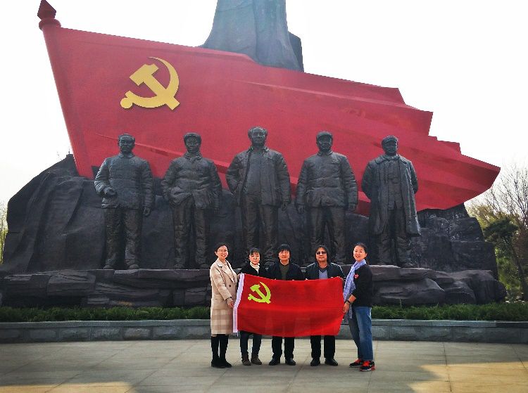 为深入贯彻习近平总书记关于勇做新时代泰山“挑山工”的重要指示要求,进一步坚定广大党员干部的理想信念和党性观念,3月19日,艺术学院艺术设计系党支部书记刘海艳、系主任逯海勇等5名教师党员来到泰安市南湖党建主题公园,开展主题党日活动。 南湖党建主题公园是泰城首个以党建文化为主题的公园,形成集宣传党的知识、开展党性教育、传播党建文化、交流研学为一体,富有特色、开放式、群众性文化活动场所,彰显了党建文化在城市建设管理中的引领作用。 春风和煦,红旗招展。支部成员在主题展示区的核心雕塑“引领”前合影,刘海艳同大家详细讲解了我党的光辉历程和取得的伟大成就,并深入讲解了雕塑中五位伟人的事迹和伟大革命思想。牛兰永向大家介绍雕塑两侧的浮雕壁画,分别为胜利渠的建设和徂徕誓师。雕塑作品气势磅礴、庄严震撼,让我们似乎又回到了那个艰辛的奋斗年代。也再一次感受到了习总书记的那句“让信仰之火熊熊不息,让红色基因融入血脉,让红色精神激发力量,我们才能不忘初心,走好新时代的长征路”。 顺着公园步道,大家依次参观了党建公园主题展示、重要论述、党史轨迹、爱国教育、红色步道、务实清廉、美好愿景等7个展示区,集中观看学习了公园所展示的习近平新时代中国特色社会主义思想和党的十九大精神、党的建设、党的历史、红色文化、革命传统、先模人物和中国梦等核心宣传内容。在泰山先锋人物展示区,逯海勇表示要传承红色基因,弘扬革命精神,以英模人物为榜样,自觉向他们看齐,保持革命战争年代的热情和冲劲,确保我们的事业永续推进。张玫玫表示要向他们学习艰苦奋斗的创业精神和优良传统以及听党召唤、忠于使命、矢志不渝的家园情怀和大局观念。在民族魂雕塑前,田晓菲表示深切感受到勇做新时代泰山“挑山工”的责任感、使命感,在今后的工作与学习中,立足于本职岗位,勇于奉献,敢于担当,开拓进取。